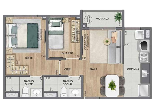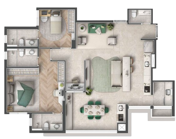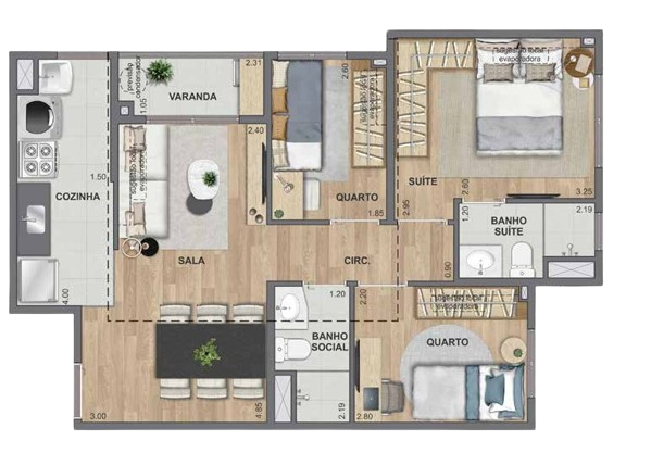 Apartamentos de 110m² com Opções de 2 ou 3 Suítes.